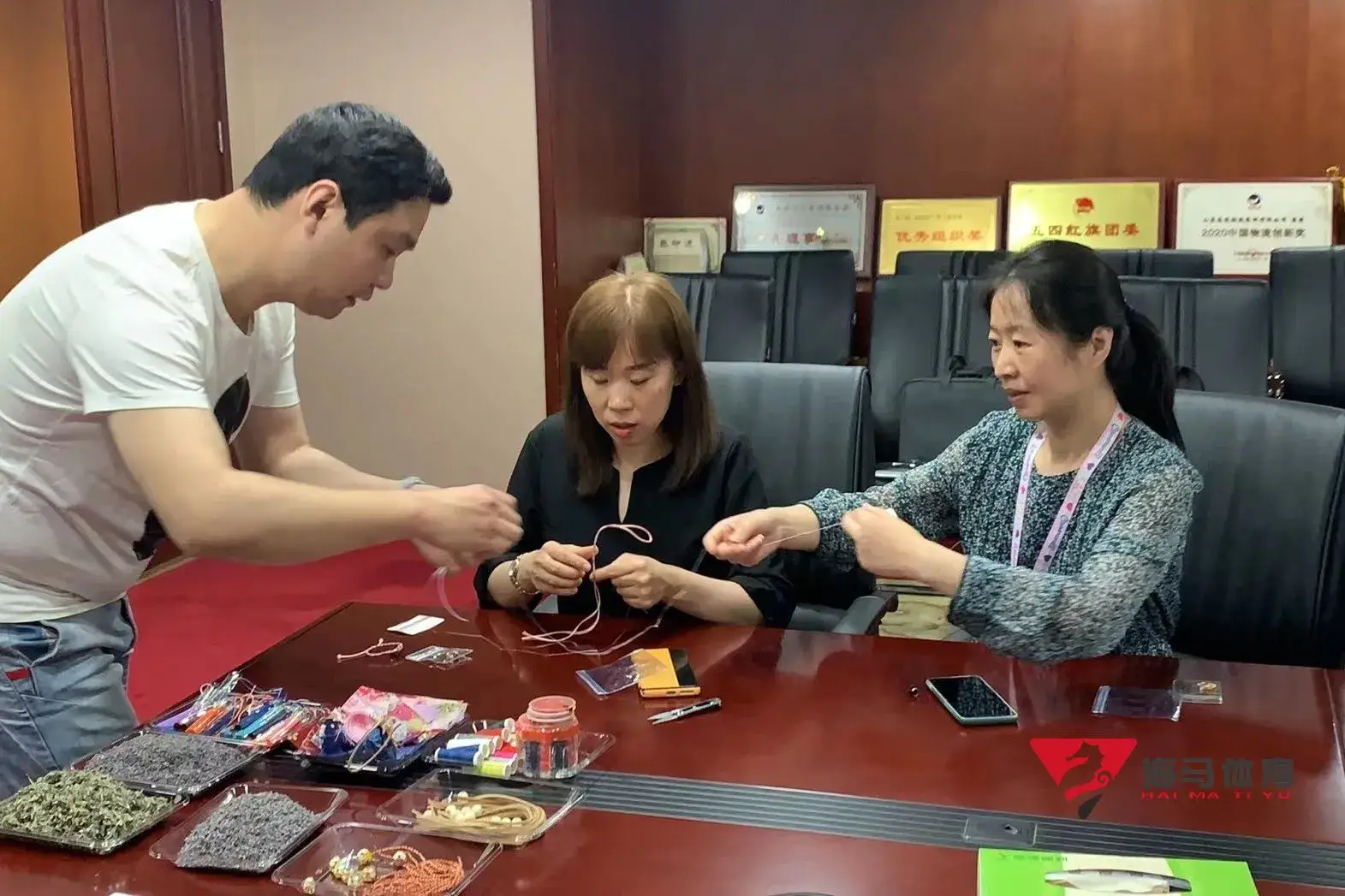 制作前,6688体育的手工老师首先介绍了端午的习俗以及端午节制作香囊与五彩绳的来历,让大家在活动前了解端午的民俗文化,手工老师将精心准备的有着美好寓意的五色彩绳、色彩绚丽的香包袋以及清香的艾草薰衣草,送到职员手中,携手制作香包和五彩绳。